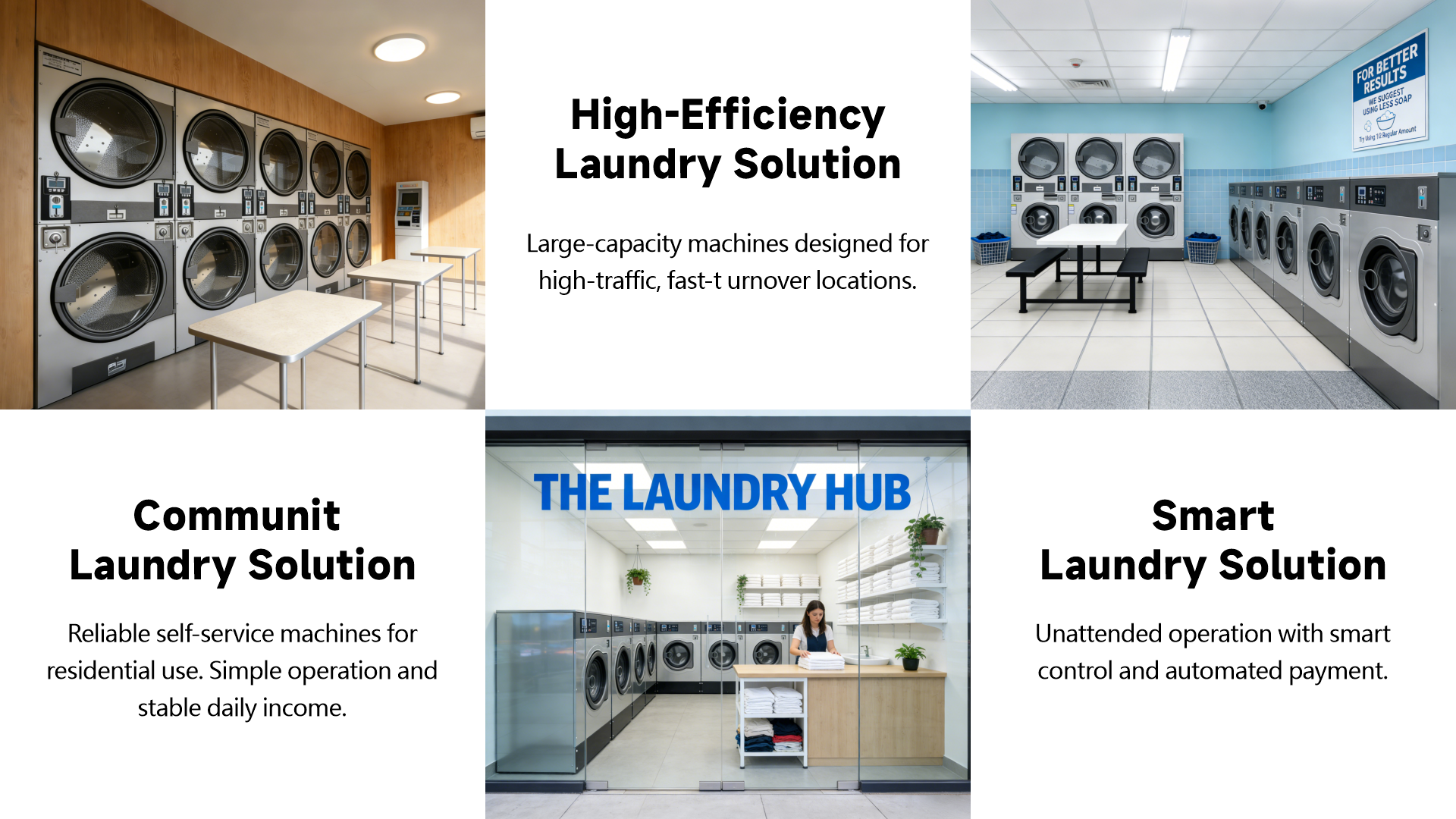Supports card, coin, and QR code payment functions. Intelligent design and efficient systems help businesses